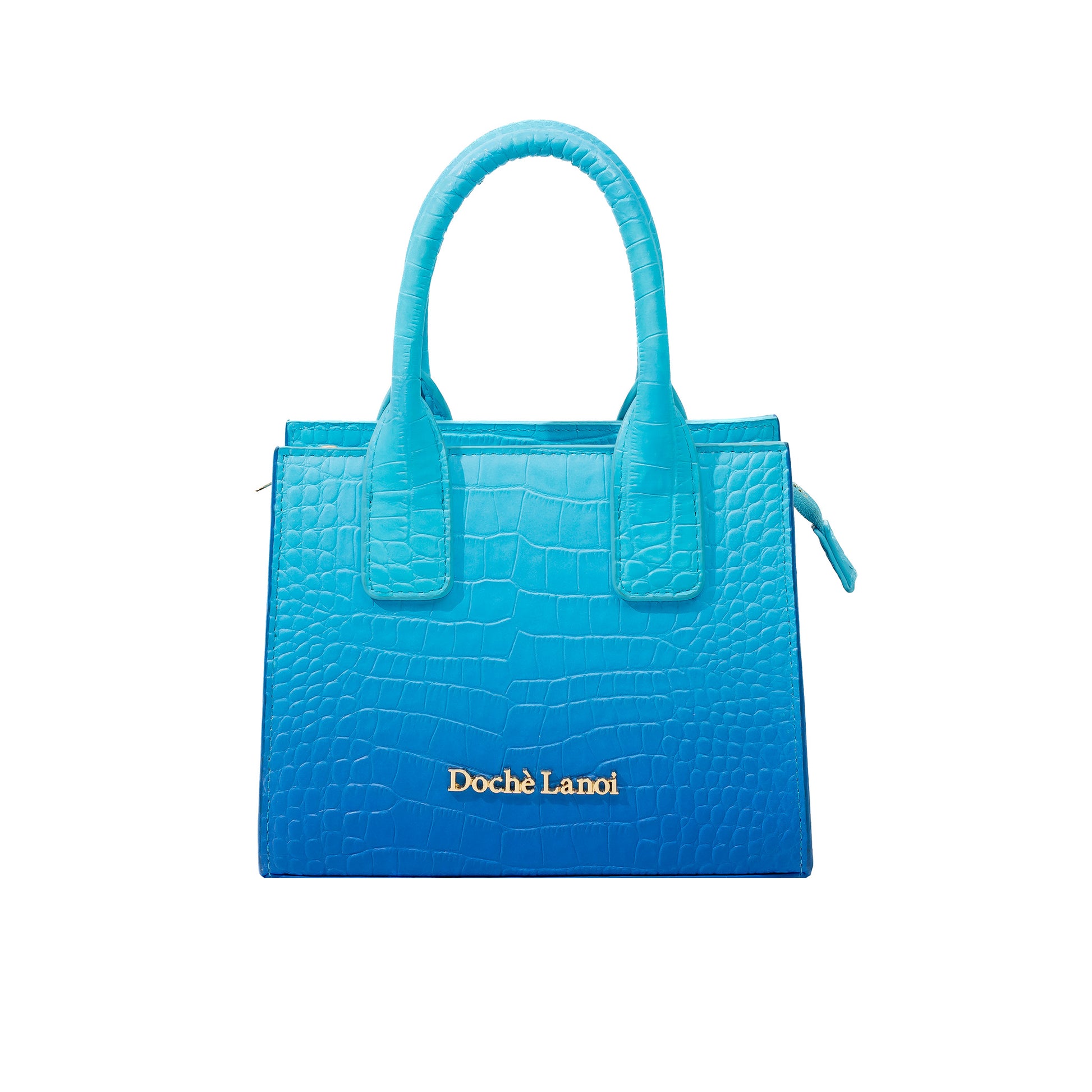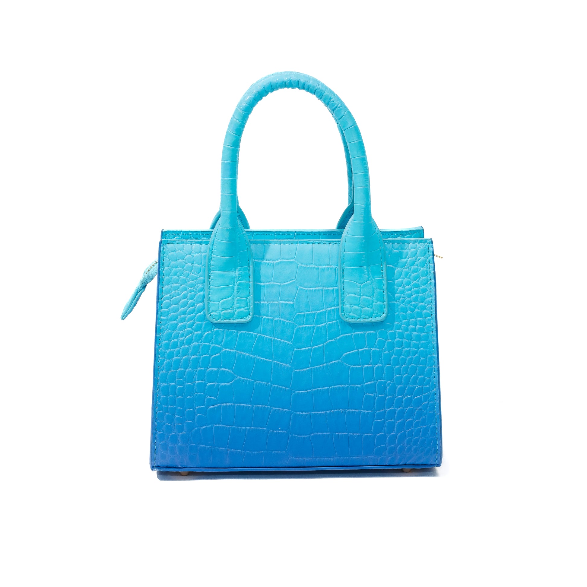 Upgrade your game with this limited edition ombre two-toned Sky/Sea Blue authentic cowhide, crocodile print leather mini handbag; After all, you deserve nothing but the best!